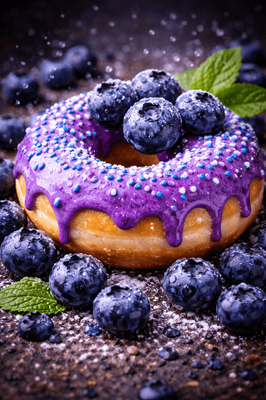 Fresh donut base layered with sweet blueberry topping and light glaze. Rich and indulgent bakery flavour.